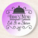 Den här "Kitchen Ord" underlägg svart kalligrafi som visas på en lavender ombre-bakgrund. "Dagens Menu Eat it or Starve" står skriven på designen. Köp din idag! Art: Sonya DeHart Design http://www.sonyadehartdesign.com | http://www.sonyadehartdesign.etsy.com