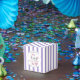 Söta lilac-blommors fridhet omger en möhippa-bricka. Enkel blommigt är underskattad och elegant. Färg är fullkomligt feminin. Diskret, elegant och vackert. Centrerad med "Möhippa" i slitstark typografi. Vit och lavendelstrimlad bakgrund för en parisisk stil..