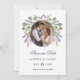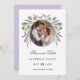 Filmdragerade botaniska ämnen med lavender foliage med par-foto Spara datumkortet. En ren modern perfekt för vår, sommaren bröllop. Anpassa genom att klicka på rutorna "Redigera den här designmallen" på objektets höger eller klicka på den blå "Anpassa den" om du vill ordna texten, ändra typsnitt och färg