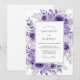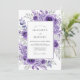 This elegant design features a lush arrangement of watercolor florals in shades of lavender and violet. Detailed purple roses and delicate hydrangeas are nestled among silver-gray eucalyptus and leafy sprigs. The soft, romantic aesthetic creates a serene mood perfect for a spring or summer event.