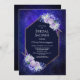 En elegant geometrisk marin blå lila ro blommigt inbjudningskort för möhippan.