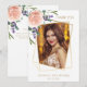 Framsida: ett faux guld-geometriskt foto ram. Dekorerad med ro, blomma och lavender i ro guld. Anpassa och lägg till ett foto, ditt namn och datum. Tillbaka: ditt tackkort och ditt namn.