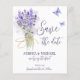 Lavender-ligans romantik med fjärilar sparar datuminbjudan med par-foto längst bak.
