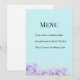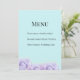 Complement your reception table scape with these exquisite lavender rose menu cards. Featuring a serene light blue background, the delicate watercolor florals provide a refreshing and sophisticated frame for your wedding meal details. This design is perfect for a spring garden wedding, an elegant tea party, or a classic floral-themed celebration, ensuring your guests have a beautiful guide to the evening's culinary offerings.