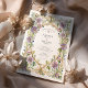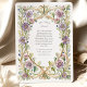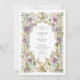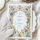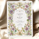 Notera din speciella dag med oöverträffad elegans med den här Art nouveau-inspirerade bröllopsinbjudan. Den här designen har en mycket detaljerad blommigt ram, som påminner om den klassiska konsten från århundradet. Gravt, flytande guldlinjer utgör ett krångligt gräns, som är sammanvävt med ömtåliga blommor i lavender-, mauve- och mjuk lila, vid sidan av ömma rosor och löv i den muterade sage-grönten. Konsten har en fantastisk, nästan tredimensionell kvalitet som frammanar brans pappra konst eller enamel cloisonné, vilket ger en unik lyxkänsla. I det här konstnärliga ram presenteras dina bröllop-detaljer i en klassisk och sofistikerad teckensnittskoppling, som är helt anpassade till kostym dina behov. Perfekt för ett par som uppskattar bra konst, vintage charm och romantiska detaljer. Den här inbjudan lämnar säkert ett bestående intryck på dina gäster.
