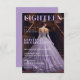 Tittar du för någon elegant att tillkännage din milstolpe firande? Den här lavender-tematiska 18-årsinbjudan kombinerar en sofistikerad magasin-stil-layout med ett stort trapphus för ett tidlöst, snyggt utseende. Bakgrundsfotot är bara ett exempel och kan bytas ut mot din egen bild för att matcha ditt grå, färg palett eller party. Denna inbjudan skapar ett vackert första intryck för en oförglömlig kväll, designad för debatter eller för någon som firar sin milstolpe i ett balrum eller en formell miljö. Perfekt för debut firande, födelsedagar eller milstolpar för elegant.