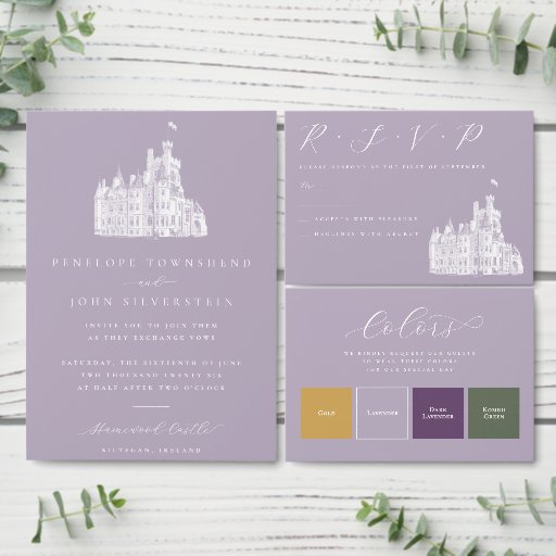 Lavender Vintage Castle Illustration Wedding Placeringskort