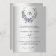 En faux silver tittar bakgrund. En blommigt krans av lavendelblommor och vattenfärgade eukalyptus greenery. Anpassa och lägg till ditt monogram initialer, namn och detaljer. Svart text.