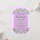 En rosa bakgrund och en lila Arch ram dekorerade med lavender-blommor och eukalyptus greenery. Anpassa och namn och detaljer. Baksida: lavender, violett färgad bakgrund.