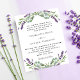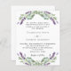 En vit bakgrund som dekoreras med lavender-blommor och eukalyptus grey. Anpassa och namn och detaljer. 1 lakan = 1 inbjudan tryckt kant till kant.