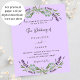 Observera att inbjudan är papper och mycket tunn. Kuvert ingår inte. Om du vill ha mer omfattande inbjudningar (samma design) kan du besöka vår butik. En violett bakgrund som dekoreras med lavender-blommor och eukalyptus greenery. Anpassa och namn och detaljer.