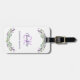 En vit bakgrund, dekorerad med lavender-blommigtar och eukalyptus greenery. Anpassa och lägga till namn och monogram initialer. Namn är skrivet med ett modernt handskript i stil.