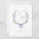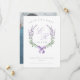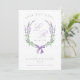 Ett elegant bröllop spara datum meddelande med vattenfärgade lavender-blommor och löv horseshoe-andedräkt avslutat av med söt coquette-båge. Ditt monogram finns i lilac Traditional script och bröllop datum i serif grått i mitten. Anpassa ytterligare med namn, bröllop och foto på motsatt sida.
