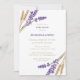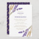 Ingenting säger romantik som lavender, och i detta fall inbjudningskort för möhippan gör de känsliga blommarna ett mjukt ram för texten. Vetet bereds tillsammans med lavendeln för att tillsätta ett fint mjöl i utformningen. Ett sans serif-typsnitt används för rubrikerna för modern enkelhet. På baksidan står en baksida av mörkens lila mot en vit framsida. Ett vete och lavender mönster dekorerar också ryggen. Fira din möhippa med det här inbjudan.