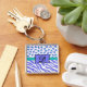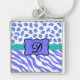 Lavender White Zebra Leopard Skin Monogram Initial Fyrkantig Silverfärgad Nyckelring