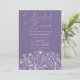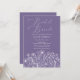 Elegant, modern och naturinspirerad - inbjudningskort för möhippan har en djup lavendelbakgrund, delikata vita blomkonturer och ett vitt skript för snyggt. Perfekt för vår, sommar eller fall-möhippor med blått eller lavendeltema, trädgårdshälsa eller party-karm. Perfekt för en chic möhippa brunch firande utomhus eller på en mysigt bakgård. ✨ Anpassade | Boho Blommigt | Garden Möhippa 🎨 Aesthetic: Lavender, Rustic, Minimalist, Whimsical 🌸 Best for: Brunch möhippas, utomhussammankomster, boho brides