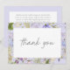 Announce your day with this Lavender Wildflower Garden Romantic Wedding thank you card, featuring delicate watercolor florals on a light lavender purple background. Perfect for a spring or summer garden wedding, this beautiful design offers a whimsical and natural aesthetic. This romantic invitation is fully customizable and sets a lovely, soft tone for your celebration. Created by Simply Farmhouse Press.