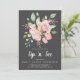 En elegant och se inbjudan med en stor vattenfärgsfärg blommigt arrangemang om rosa ros och grön, avslutat med faux rosa glitter, på en sofistikerad bakgrund av mörk grått. Baksidan är i fast ljus rosa. Det moderna stil-teckensnittet med sans serif-teckensnitt ge i penseln kallas ett modernt utseende.