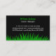 Showcase your professional lawn care and landscaping business with this striking business card. Featuring a bold green grass graphic at the bottom and a silhouette of a lawn mower, this card immediately conveys your services. The clean, modern design is perfect for any mowing or yard maintenance professional. Make a lasting impression with this eye-catching and informative card, ensuring your clients remember your business name and contact details with ease. It's the ideal way to represent your commitment to quality lawn care.