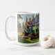 I roligten har mugg en tecknad man som gräver sin gräsmatta. Underbar för mannen som kärlek sin ridmoder.