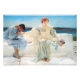 Lawrence Alma Tadema ber mig att inte trycka mer. Oljemålning på arbetsyta från 1906. En vacker målning av den engelska konstnären Herr Lawrence Alma Tadema, Fråga mig: No More är en av hans vackra romerska historiermålningar med en söt ung kvinna och hennes högste sitta på en marbelbänk. Kvinnan bär en blå gås och sitter med en bukett av lila blommor. En underbar gåva till fläkt av Herr Lawrence Alma Tadema, Romantisk konst och Roman History Paintings.