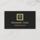 This modern and stylish custom business card features a square double border and a gold scales of justice logo on a black background. Customizable text and logos are available. Perfect for legal services consultants, lawyer office, attorney at law, legal advisors, judge, and other legal professionals.