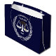 Advokatpresentpåse med kreativ skikt med en svart och guld studentmössa. Om du vill anpassa redigeringstexten för att lägga till namn och år eller på annat sätt anpassa den efter juristexamen.