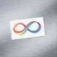 Ljus symbol för oändlighet från plastskikt i röda, gula, gröna, turkosa, blå och lila mättade färger på vit bakgrund.