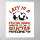 Lazy är ett starkt Ord. Jag föredrar att kalla det selektivt deltagande. Lättfärdighet och sarkastisk utformning för dem som kärlek ska sova, ta tuppen och fördröja arbetet. Coola humoristiska prisvaror för dem som har en fritidsdag när de inte gör någonting. Perfekt för sömn. Underbar julklapp och födelsedagspresent för familj och vänner.