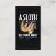 Lazy Sloth Funny Pancreas T1D Diabetes Visitkort