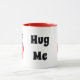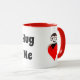 En stencil som kramar ett rött kärlek-hjärta. Lutten arm ligger i kor över varandra. Ovanför lutningen är en utbytbar text som säger "Hug Me"