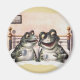 vintage söta grodor som äter frukost i sängen