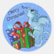 Lil'draon försöker fånga en snöflake på sin tounge! Fantasy älskare kommer att tråka ut denna söta lila drake perfekt för att försegla julkortskuvert! Art Copyright till Erin Cooper