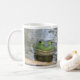 Unik fotografi vid den WestCreek designen dekorerar denna mugg med en gladlynt bullfrog som kopplar av i hans damm. Alla den ljusa designen för åldras, och grodan fläktar likadant.
