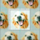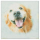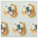 Detta tyg presenterar ett belagt med tegel vattenfärgporträtt av en le guld- retrieverhund, på en blåttbakgrund.
