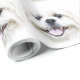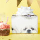 Lyckligt och le hund älskare för ansikte för vitshih tzu som slår in papper