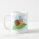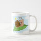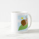 Le den toppna snigeln på hans löv kaffemugg