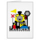 Le tågT-tröja, hänger lös, kort, klistermärkear, knäppas, magneter, keychains, mousepads, prydnadar, muggar, och mer med ett gult tåg med ögon och ett leende, en röd och blåttmotor och kolbilen på tåg spårar, stoppet lätt, flagga, och järnvägkorsningen undertecknar.