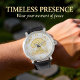 En fantastisk guldskulptur från Buddha är central för en serensammansättning, omgiven av oerhört designade löv och blommönster.