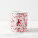 Leafy Red Mönster Modern Elegant Monogrammad Kaffemugg