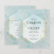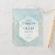Havsglasets blåa marmelad med guld löv är temat för elegantens moderna bröllopsinbjudan.