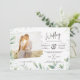 En elegant och en modern bröllopsinbjudan som gör att du kan lägga till ett foto av par förlovning. Har en lafy grönt-överlagringsbild. Perfekt för grönt löv, temat bröllop.. Typografi fält på båda sidor och en QR-skanningskod. ⭐ Den här allt-i-ett-bröllopsinbjudan innehåller textmallsinformation fält på båda sidor, vilket gör att du kan lägga till din bröllop-ceremoni, mottagning, OSA, presentregister och logiinformation utan att köpa extra-inhägnader och kontorsmaterial. Detta urval garanterar ett högkvalitativt budgetalternativ samtidigt som man sparar pengar och är ekologiskt ansvarsfullt. Färre lakan av pappra är lika med mindre sopor! Du kan använda ÖVERFÖRINGEN verktyg att överföra designen till andra varor eller få tillgång till Zazzles tjänst FREE LIVE DESIGNER via alternativen på webbplatsen för hjälp med kreativet. Det är värt att notera att du kan inkludera en QR-skanningskod med den här inbjudan. Om du inte behöver det här tar du helt enkelt bort bilden eller byter ut den mot en logotyp, bild, monogram eller bild. Zazzle har många anpassningsfunktioner som hjälper dig att vara kreativ och utforma din egen stationära bröllop. Våra bröllopsinbjudningar passar alla säsonger, inklusive sommar, vår, höst, fall och vinter. De är underbara för bröllop som hålls utanför, innanför, på stranden, i en lada, på landsbygden, på ett berg, i sjö, i skogen eller i skogen. ⭐ Njut av din bröllop-planering äventyr, spara och följa vår affär och fäst vid dina Pinterest-board. ⭐