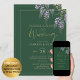 Vacker akvarellillustrerad sommar lila, syren, lavendel färg Wisteria blommor med gröna blad, guld typsnitt och modern typografi mot en smaragdgrön valvbakgrund. Det finns textmallar på båda sidor med QR-skanningskod. ⭐ Design av LeahG ™ Grundare av Low Budget Wedding Network ®. Grattis på er förlovning. 📌 Fäst denna design på din bröllops moodboard på Pinterest och njut av din bröllopsplanering. 🥰 Dina vänner och familj kommer att älska denna moderna trendiga eleganta bröllopsdetalj. alternativ (från 0,30) se den bifogade samlingen för att se dem alla. ⚠️ OBS! att pappersvikt och storlek återspeglas i priserna.⭐ De flesta av mina designer innehåller mallfält på båda sidor (där det tillåts av produkten) för att säkerställa att du får det mesta värdet och praktiska nyttan. När det gäller inbjudningar kan du inkludera RSVP, gåvoregister, bröllopswebbplats, mottagningsdet