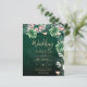 Moderna trendiga smaragdgröna tropiska öblad och blommor inbjuder med textmallfält på båda sidor. Koordinerande föremål med denna design finns i den bifogade samlingen som inkluderar bröllopsinbjudningar, rsvp, spara datum, välkomstskylt, klistermärken, program, meny, brudtidsinbjudningar, repetitionsmiddag, nuestra boda-inbjudningar, budgetinbjudningar med mera. Detta designtema är perfekt för ditt destination-, strand-, tropiska ö-, sommarbröllop. Design av registrerat varumärke LeahG.