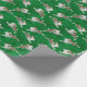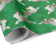 Leaping Hare Jul Wrapping Papper har en leaping hare (kanin) i en röd julhatt på en vibrerande grönt med bakgrundsfärg som målas i vattenfärg på texturerad papper.