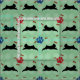En hoppande standard Schnauzer hoppar över en bakgrund med grönt-blått med en spridning av ben och tass-spår. Den här designen är avsedd för sömlös bricka.