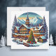 Hyperrealistisk bild av Leavenworth, Washington utsmyckad till jul för julkort. Vacker arkitektur, berg och julgransdekorationer.