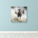 Ett andningsögonblick som fångas i rörelse - stora hästar gallop genom det grunda vatten, deras mäktiga strider som skickar mousserande droppar in i luft. Energi, frihet och nåd för dessa fantastiska varelser kommer till liv i denna fantastiska scen
