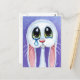 Ledsen men sött vykort med en illustration av en gråtande vit kanin. Den kanin som har en hjärtformade rosa näsa och en stor tårfylld ögon. Artwork © Lisa Marie Robinson. Alla höger reserverade.