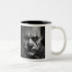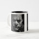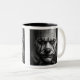 En grayscale digital målning av en ledsen clown. Tvåtonig Mugg, 11 oz